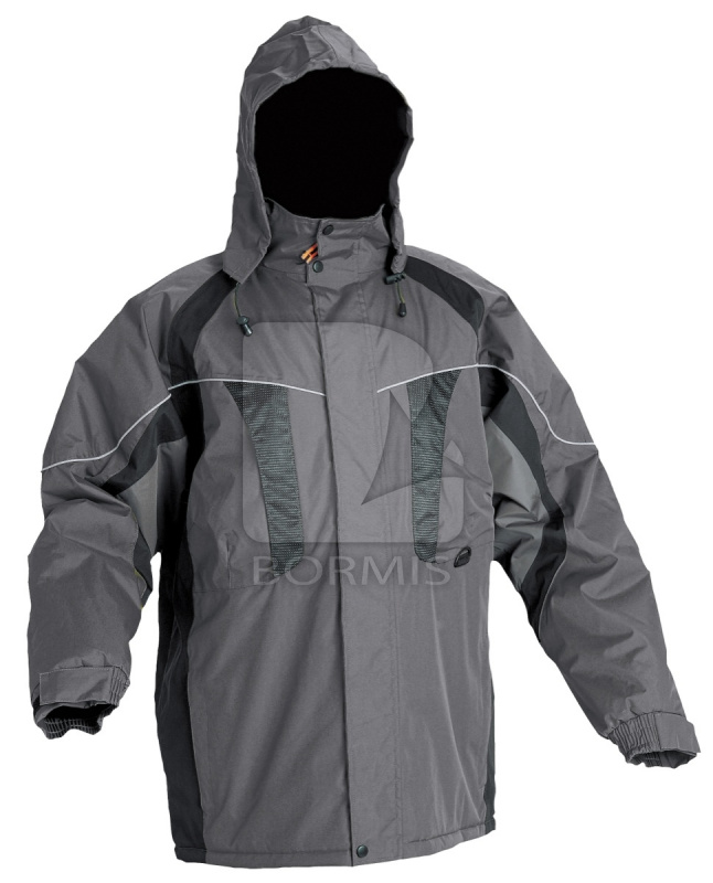 Nepremokavá zateplená bunda s kapucňou v golieri. Spodný lem so sťahovaním na šnúrku, vrchný materiál s mechanicky odolnou úpravou, reflexné doplnky.