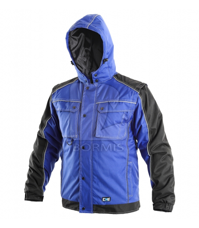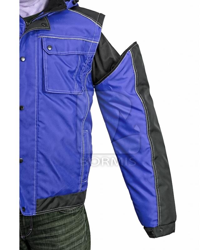 Zateplená bunda s odopínacou kapucňou, odopínacie rukávy. Rukávy a dolný okraj zakončený regulovateľnou manžetou. Lepené švy, vnútorné vrecko, reflexné výpustky.