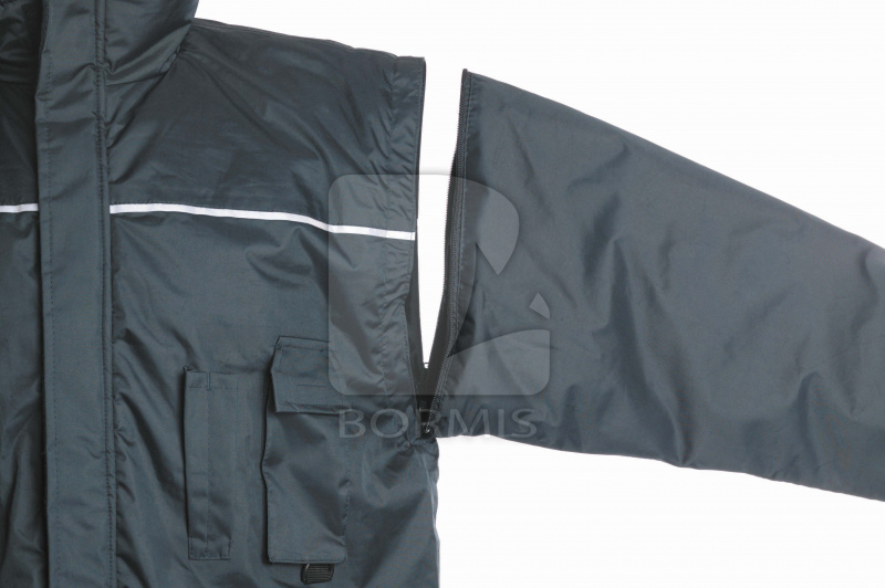 Nepremokavá bunda s teplou podšívkou a odopínateľnými rukávmi.