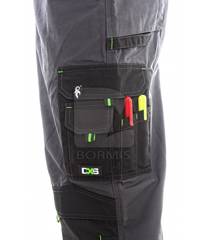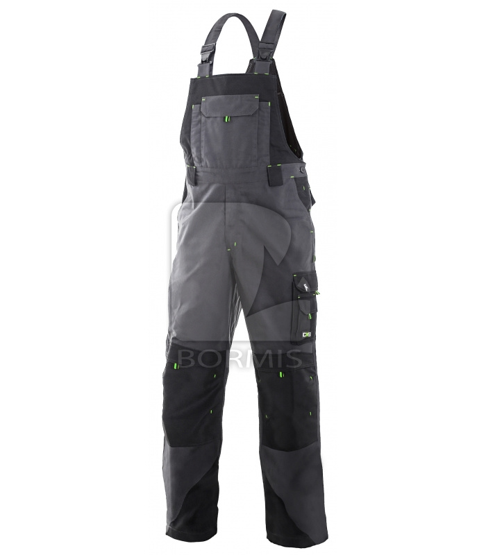Pánske nohavice s náprsenkou, zosilnené kolená s možnosťou vloženia kolenných výstuh, pevný pás s pútkami na opasok, predné klinové vrecká, zadné vrecká s klopami, bočné multifunkčné vrecká, náprsenku s veľkým vreckom a vreckami na ceruzky, vnútorné náprsenkové vrecko na zips, spodná časť nohavíc vystužená materiálom 600D polyester.