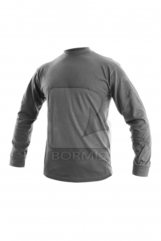 Tričko s dlhým rukávom, okrúhly golier, zdvojené švy, spevňujúca krčná páska, trup je po stranách bez švov. Finálna silikónová úprava. Rukávy zakončené elastickou manžetou.