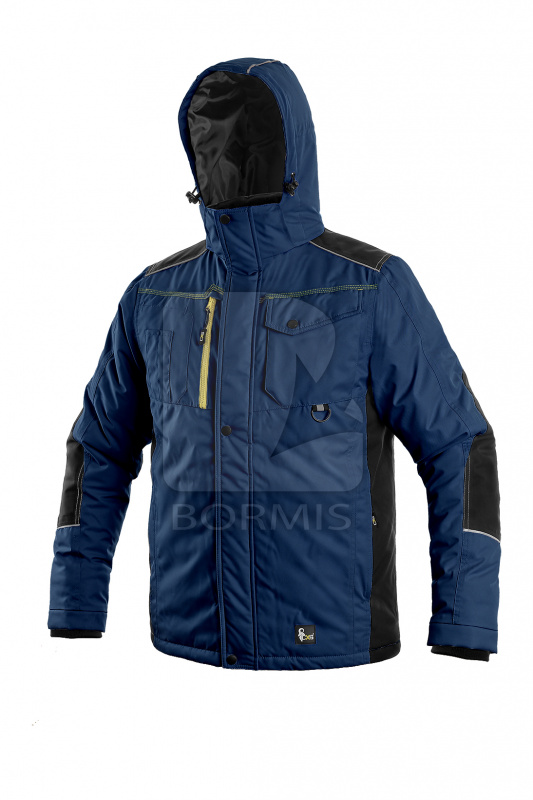 Pánska bunda, zateplená. Odnímateľná kapucňa, vnútorné manžety v rukávoch, sťahovanie v dolnom okraji, reflexné doplnky, 3 vnútorné vrecká, lepené švy, TPU membrána.
