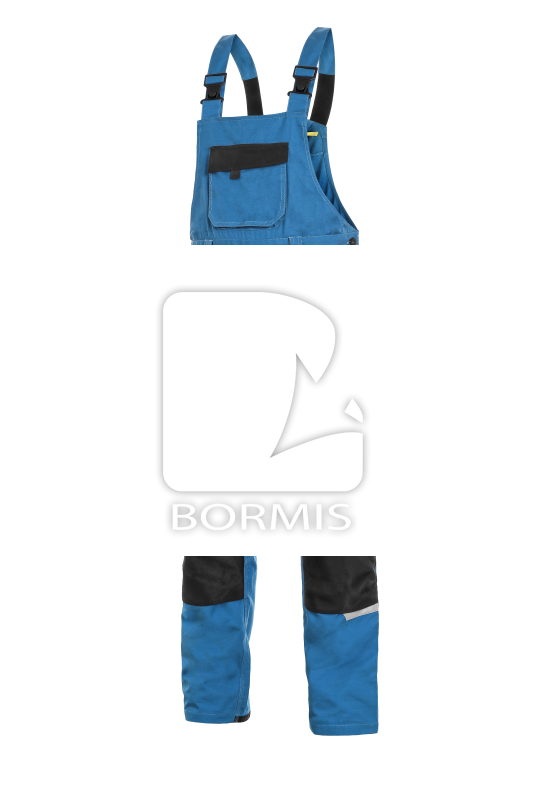 Pánske montérkové nohavice na traky, strečová tkanina umožňujúca voľný pohyb, náprsné vrecko so záklopkou, pás s pútkami na opasok, predné vrecká s vreckom na zips, multifunkčné vrecká na oboch stranách, kolená spevnené 600D polyesterom s možnosťou vloženia kolenných výstuh, dve zadné vrecká, jedno so záklopkou, zadný spodný lem nohavice vystužený 600D polyesterom, traky s gumou vzadu, reflexné doplnky.
