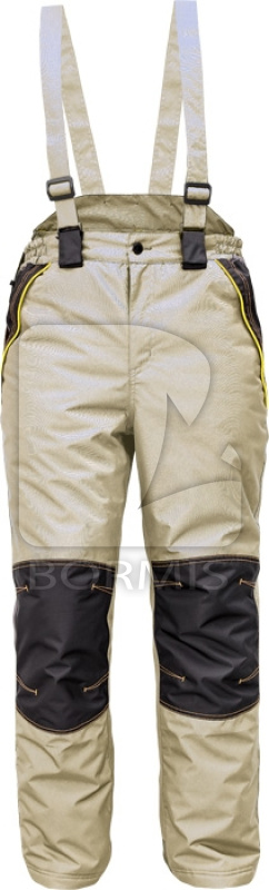 Pánske zimné zateplené nohavice s odnímateľnými trakmi; vystužené kolenné časti a zadné spodné časti nohavíc; 2 bočné vrecká na zips; 1 zadné vrecko na zips. Zvýšený zadný diel. Vodný stĺpec 3000 mm, priedušnosť: 3000g/m2/24h.