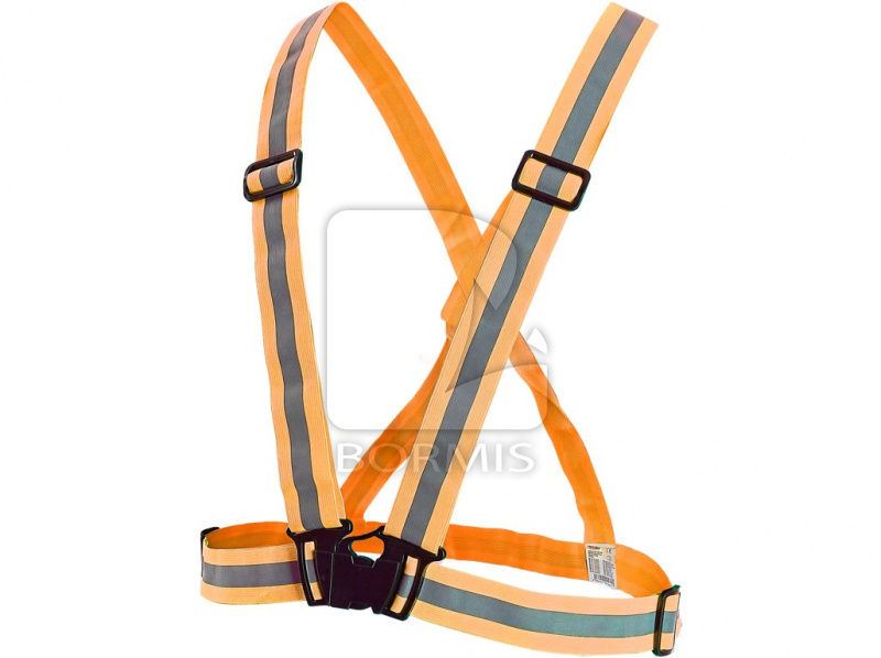 Elastický kríž, šírka 4 cm, 1,5 cm reflexné pásy, nastaviteľná šírka aj dĺžka pásov na sponu. Norma: EN 13356