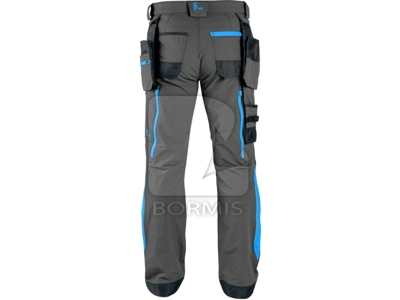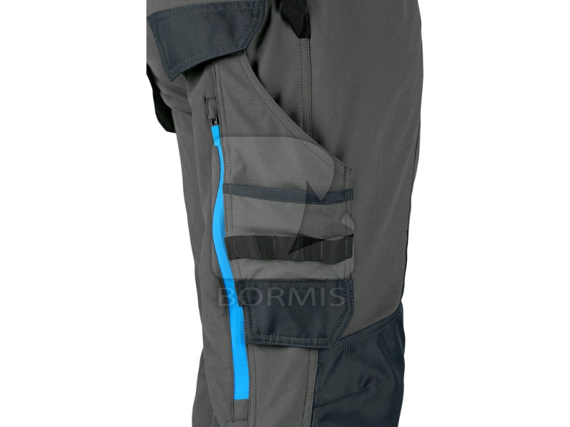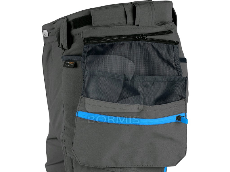 Vysoké percento nylonu zaručuje schopnosť rýchleho schnutia. Vybavenie nohavíc: flexibilný pás s možnosťou upravenia veľkosti a pútkami na opasok, 2 predné vrecká, 2 odnímateľné vrecká na náradie vystužené materiálom CORDURA, vrecko na zips na stehne, multifunkčné bočné vrecko, 2 zadné vrecká v spodnej časti vystužené materiálom CORDURA, zipsová ventil zadnej časti stehien, kolená zosilnené materiálom CORDURA s možnosťou vloženia kolenných výstuh, spodná časť nohavíc vystužená materiálom CORDURA.