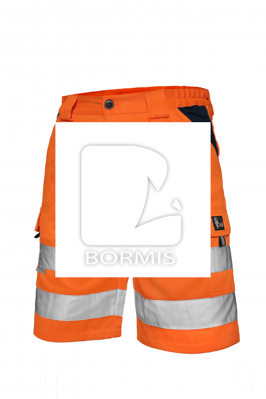 Pánske výstražné kraťasy, pas s pútkami na opasok a gumou v bokoch, predné klinové vrecká, zadné vrecká so záklopkou na suchý zips, bočné vrecká so záklopkou na suchý zips, ľavé bočné vrecko rozdelené na dve komory, reflexné pruhy 3M. Doporučené použitie: Letný pracovný odev, stavebníctvo, cestári, vodiči, údržba, logistika, letecká a lodná doprava, smetiari, záchranári.