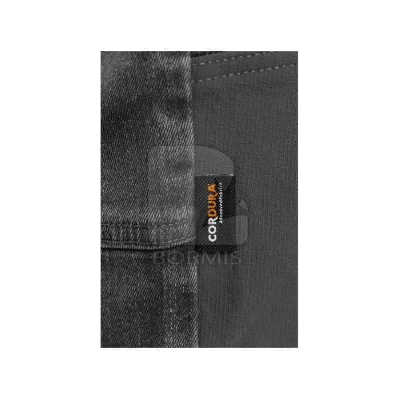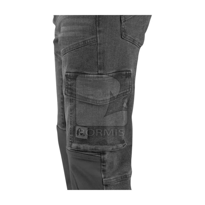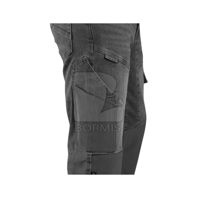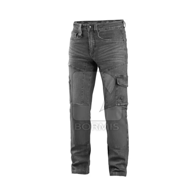 Pánske strečové rifle s užším moderným strihom nohavíc. Exponované miesta ( kolená ) sú vystužené materiálom CORDURA®, ktorý je odolný a pritom elastický, a vďaka tomu neobmedzuje v pohybe. V pase sú pútka na opasok s plastovým príveskom a pútkom na kladivo. Nohavice sú vybavené prednými i zadnými vreckami,ľavým stehenným vreckom so záklopkou a pravým multifunkčným vreckom s CORDURA® materiálom.