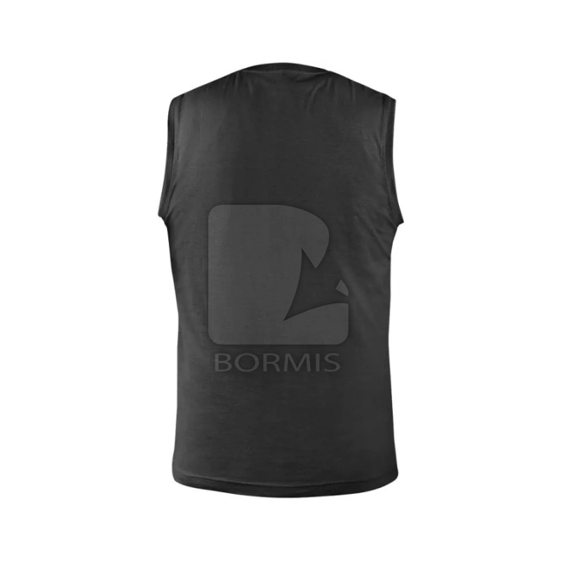 Pánske tričko bez rukávov. Spevňujúca krčná a ramenná páska. Okrúhly priekrčník. Bočné švy. Finálna silikónová úprava materiálu, ktorá zaisťuje vyššiu mäkkosť, rozmerovú stálosť, obmedzuje žmolkovanie. Vhodné do práce aj na voľný čas.