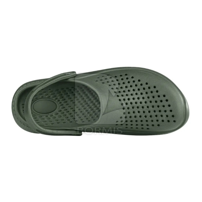 Pánsky voľnočasový nazúvák na každodenné nosenie. Ľahká a pohodlná obuv z EVA materiálu zaisťuje komfort počas celého dňa a jednoduchú údržbu. Perforácia vrchnej časti umožňuje optimálnu priedušnosť. Variabilný pätový pásik dodáva istotu a stabilitu pri chôdzi. Materiál: EVA guma