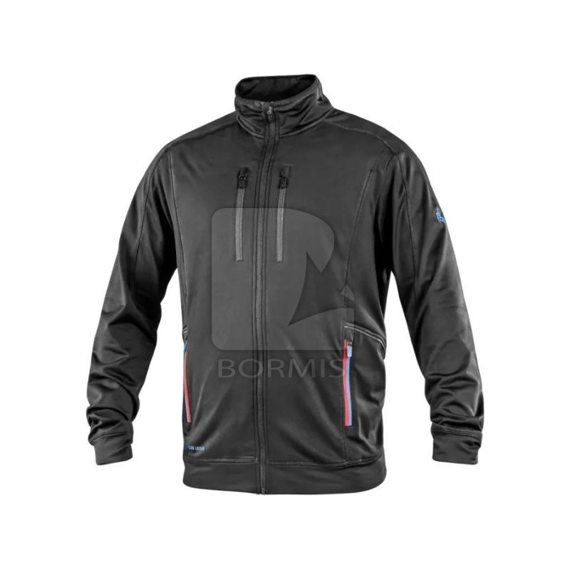 Pánska mikina vhodná na prácu aj voľný čas. Vďaka vypasovanému strihu a elastickému materiálu pristane každej postave. Je odolná proti pokrčeniu a nenáročná na údržbu. Mikina má zapínanie na zips, náprsné a bočné vrecká na zips a čierne reflexné doplnky. Čierna s HV modro/červenými doplnkami.