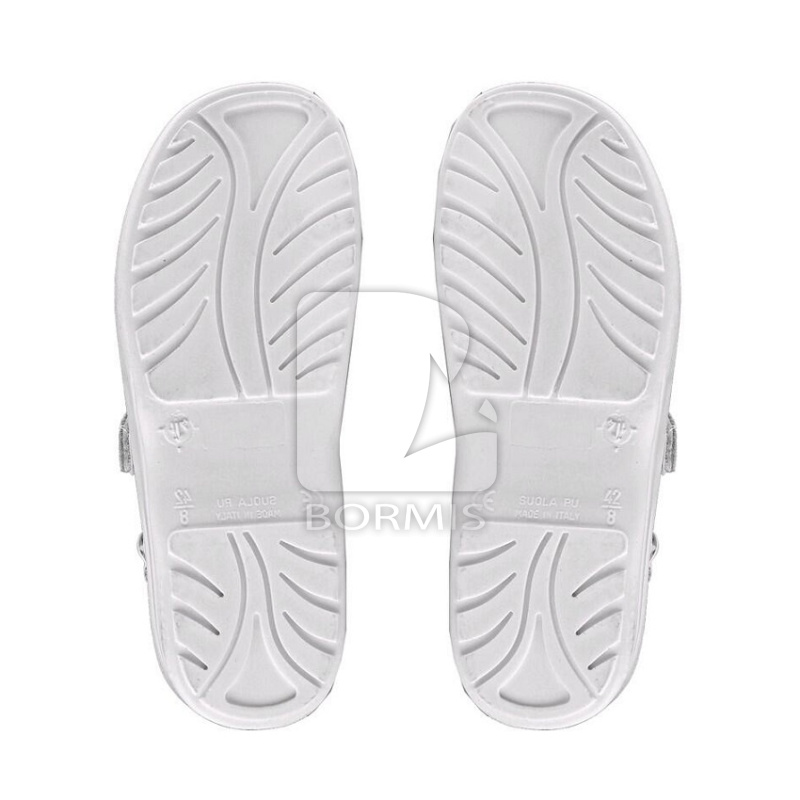 Pracovný kožený, sandál s plnou špicou. Zapínanie na suchý zips, nastaviteľný zadný pásik na päte. Pohodlná planžeta s hovädzej kože.
