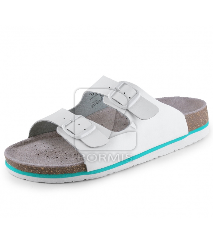Šľapky, dámske, celokožené s dvoma nártovými remienkami, vyvýšená podrážka.