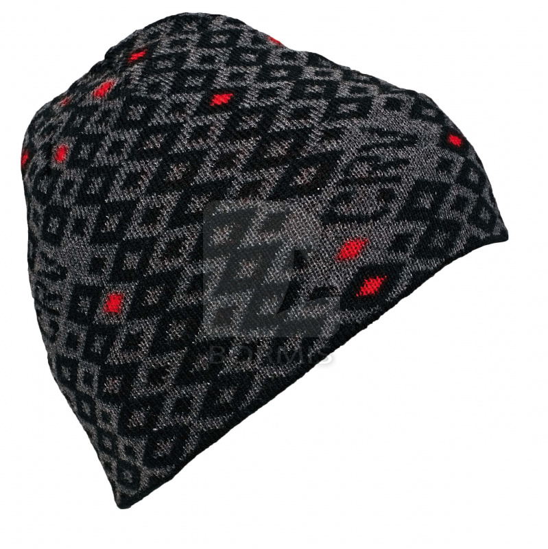Pletená čiapka s moderným vzorom, spevnená vrstva zabraňujúca prefúknutiu.