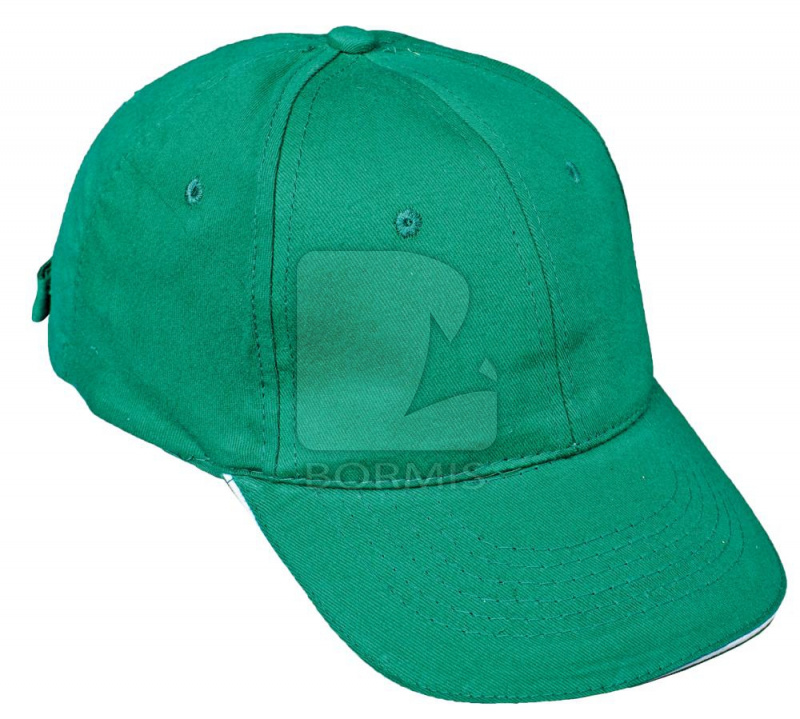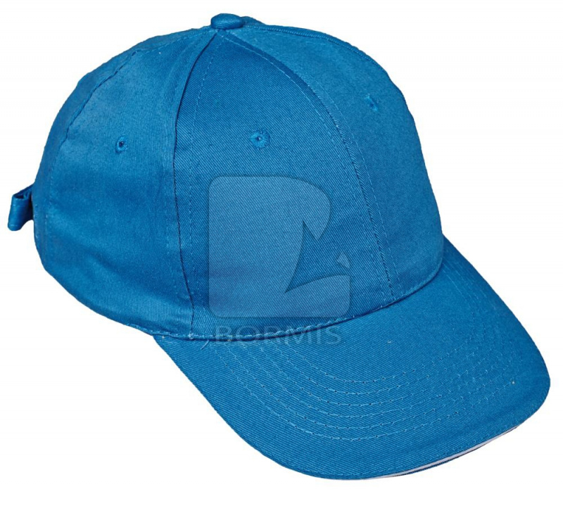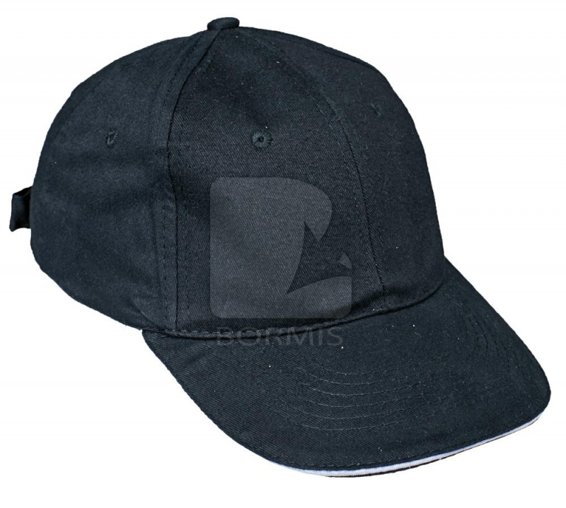 Čiapka baseballového typu s reguláciou veľkosti pomocou kovovej spony.