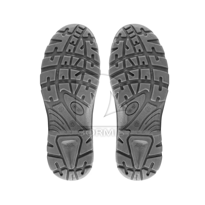 Materiál: zvršok z 1,6 - 1,8 mm štiepanej nubukovej kože (jeden kus), vonkajšia ochrana päty z PU a ochrana päty z TPU, podšívka z priedušnej tkaniny odolnej proti oderu, podrážka: PU-PU, odolná proti olejom, antistatická, protišmyková a odolná proti prepichnutiu.