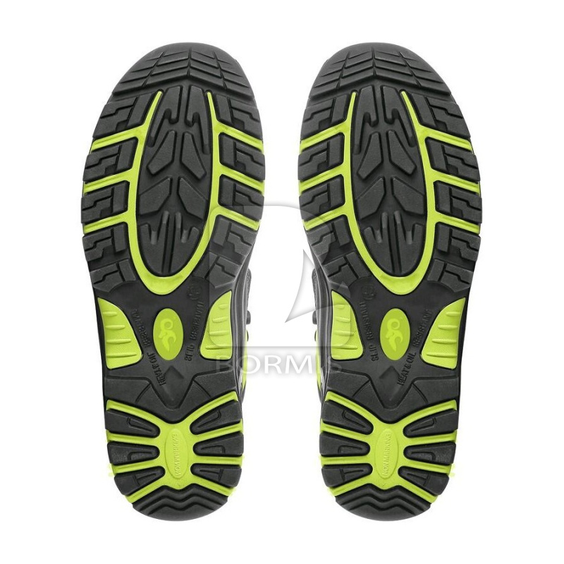 Materiál: zvršok z 1,6 - 1,8 mm štiepenkovej nubukovej kože (z jedného dielu), vonkajšia TPU ochrana päty, bez kovových častí, podšívka z priedušnej oderu odolnej textílie, podošva: PU-guma, olejuvzdorná, antistatická, protišmyková, odolná proti prepichnutiu a kontaktnému teplu do 300 °C.