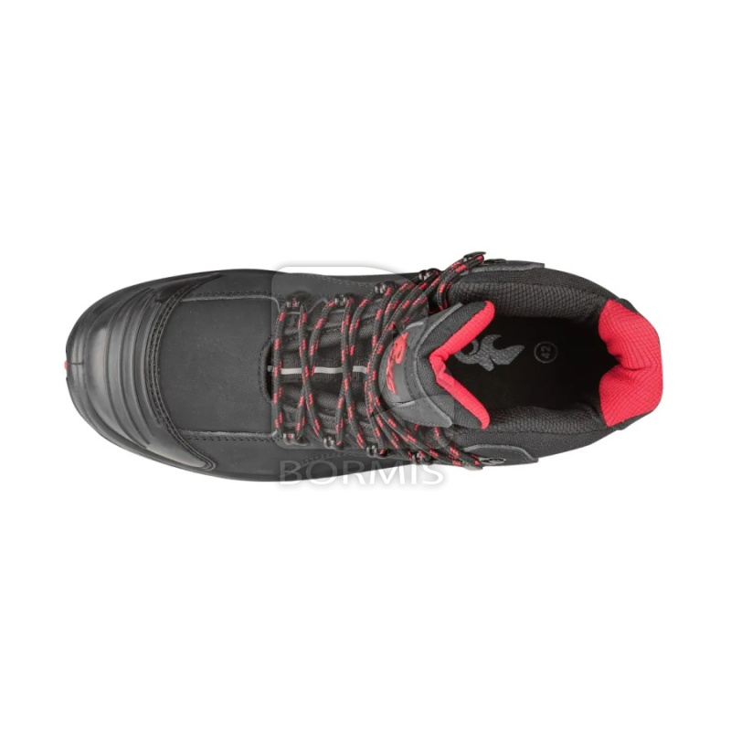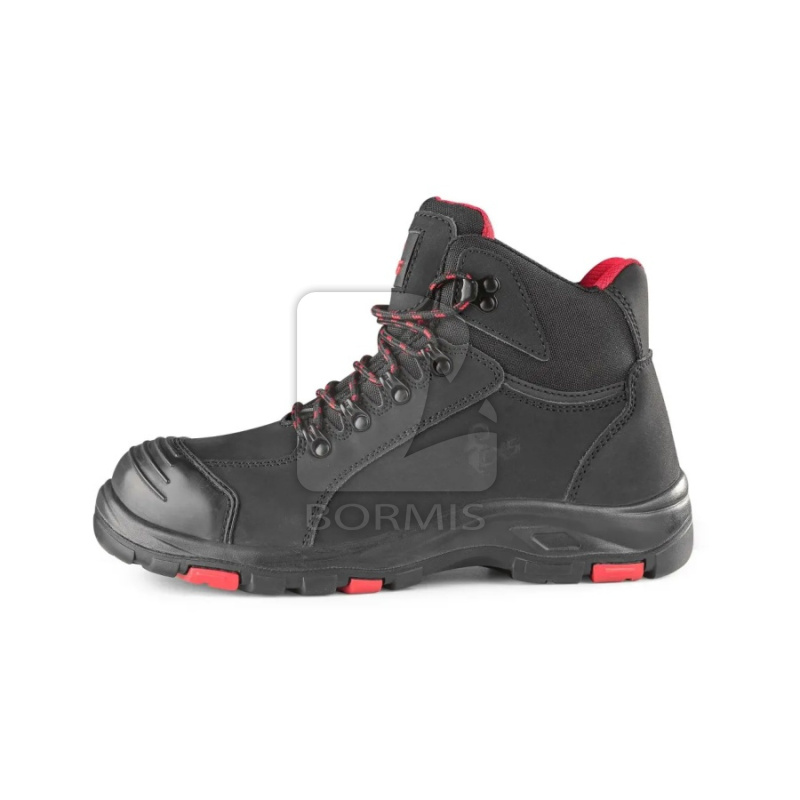 Materiál: zvršok z hydrofóbnej hladkej nubukovej kože kombinovaný s PU doplnkami, predná časť zosilnená proti okopu, priedušná a oderuvzdorná textilná podšívka, podošva: PU/guma, antistatická, olejovzdorná, protišmyková, odolná proti kontaktnému teplu do 300°C.