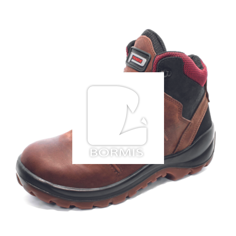 Bezpečnostná členková obuv s oceľovou špicou a stielkou, TPU podošvou rezistentnou voči pohonným hmotám, priedušnou podšívkou, absorpciou energie v päte a vodeodolným zvrškom z kože.