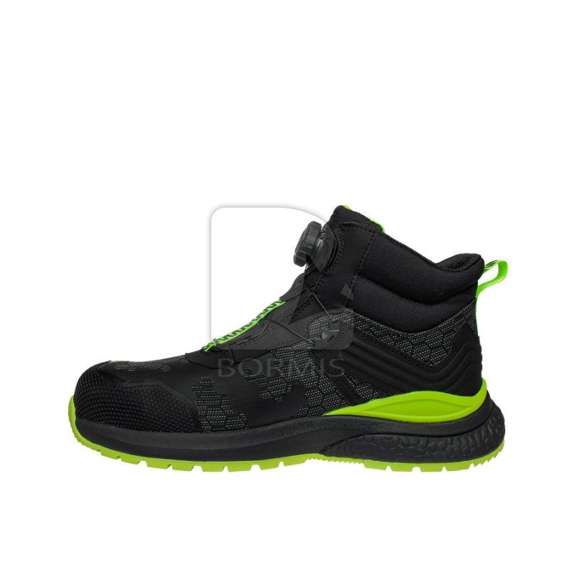 Veľmi odolná pracovná členková obuv s antistatickými vlastnosťami, špičkou a planžetou vhodná do vonkajšieho a vnútorného prostredia. Táto obuv predstavuje revolúciu v pracovnej obuvi, lebo v sebe skĺbila veľa užitočných vlastností v jednom. Vyznačuje sa vysokou odolnosťou voči mechanickému poškodeniu, voči vode, kontaktnému teplu, uzatváranie obuvi je ľahké a rýchle, obuv má veľa bezpečnostných prvkov, anatomicky tvarovaná stielka má zdravotné prínosy na stav chodidla. Vysoká odolnosť zvršku voči predretiu a zároveň vodeodolnosť je zaistená pomocou inovatívneho materiálu PUTEK, ktorý sa skladá z vysoko húževnatého polyesterového jadra a PU plášťa, ďalej je použitý i CORDURA materiál. Tieto dva materiály zvyšujú životnosť obuvi. Ochrana špice obuvi voči okopu, tj. mechanickému poškodeniu zvršku zaisťuje TPU povrstvenie. Rýchle a ľahké uzatváranie obuvi pomocou ATOP systému. Obujete sa, pootočíte špeciálnym uťahovacím kolieskom a idete. TPU spevnenie v oblasti päty. Širšia predĺžená podošva v oblasti päty zaisťuje dobrú stabilitu. Podošva je odolná voči kontaktnému teplu a pôsobeniu pohonných látok a palivových olejov. Bezpečnostnými prvkami chrániacimi vaše zdravie sú: Mimoriadne ľahká, avšak veľmi pevná karbónová ochranná špica s karbónovými vláknami, ktorá chráni prsty chodidiel pred mechanickým poškodením (pádom predmetov, atď.) Pevná a veľmi pružná LIFLEX planžeta chráni spodok chodidla proti prepichnutiu, silná gumová podošva proti kontaktnému teplu. Protišmyková SRC vlastnosť podošvy vám zistí dobrú stabilitu pri pohybových aktivitách. Reflexné prvky v podobe vlákien obsiahnutých vo vrchnom materiály PUTEK zaistí, že budete videný pri osvietení za tmy i šera. Pohodlie pri nosení vám zaistí anatomicky tvarovaná stielka ACTIVA, ktorá je vyvinutá pre podporu pozdĺžnej a priečnej klenby a naviac vďaka mäkkému vystuženiu v oblasti päty sú tlmené nárazy na pätnú kosť. Stielka je vyrobená s vyšším podielom aktívneho uhlia, ktoré pohlcuje pach a saje pot. Doporučené použite: práce vo vnútorných a vonkajších priestoroch, na spevnených povrchoch.
