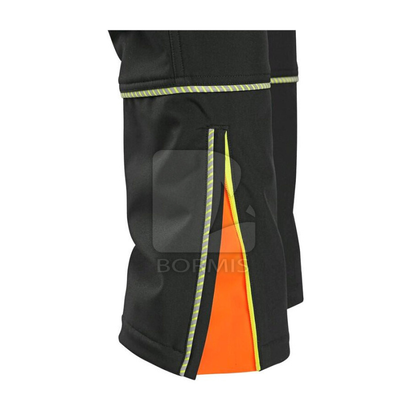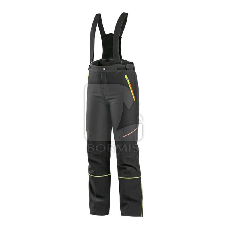 Detské softshellové nohavice pre voľný čas, odopínacie traky s nastaviteľnou veľkosťou, flexibilný pás s možnosťou upravenia veľkosti, 2 predné vrecká na zips, zadné vrecko na zips, zips dole na nohaviciach, vnútorný protisnežný pás v spodnej časti nohavíc, reflexné doplnky, TPU membrána. Odolnosť materiálu proti prieniku vody 5000 mm mimo oblasť švov, paropriepustnosť 5000g/m2/24h.