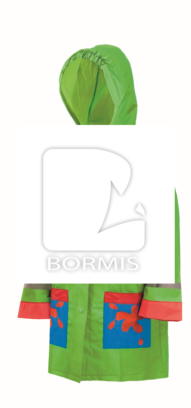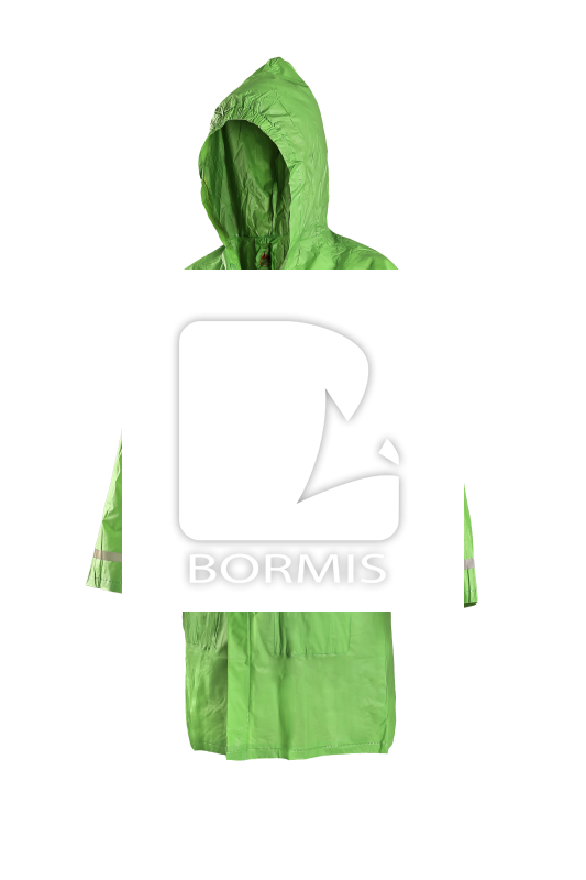 Detská pláštenka, nepremokavá, s kapucňou na pevno, zapínanie na cvoky, zatavené švy, reflexné doplnky.