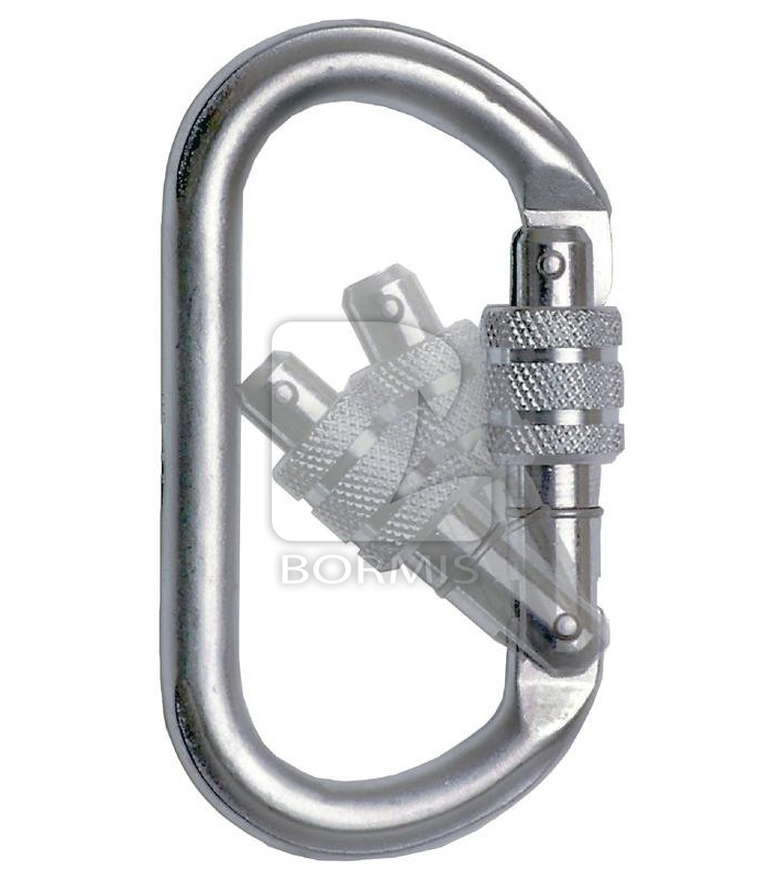 Bezpečnostná karabína. Karabína so šróbovacím zámkom, rozsah otvoru 18 mm, rozmery: 108 x 60 mm.