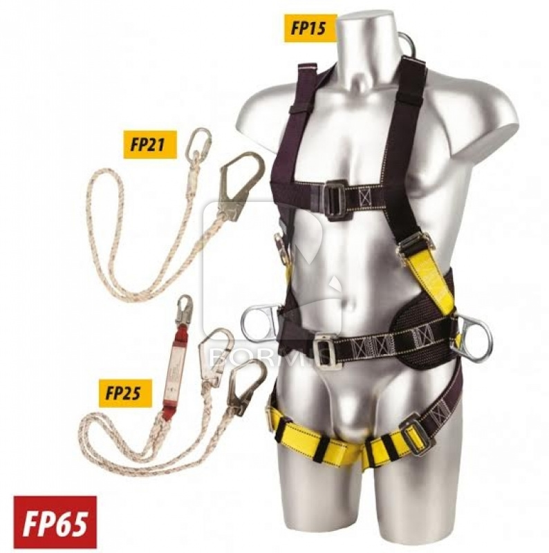 - Dvojité lano s tlmičom pádu, karabínou a dvomi lešenárskymi hákmi
