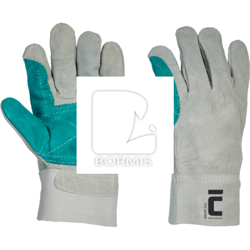 Rukavice z hovädzej štiepenky, zosilnená dvojitá vrstva v dlani na palci a ukazováku a so 7 cm manžetou.