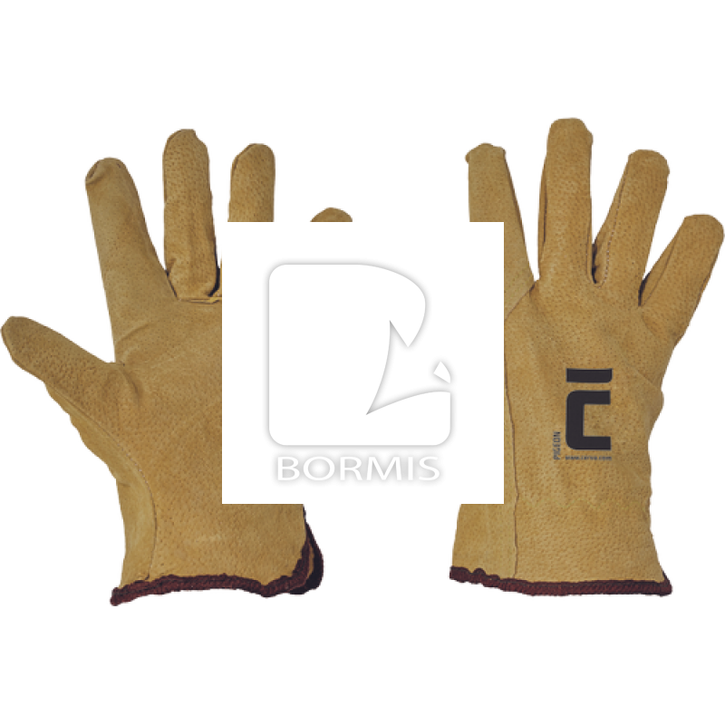 Celokožené rukavice bez podšívky zo štiepanej bravčovej kože a s pruženkou na zápästí.