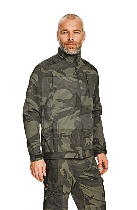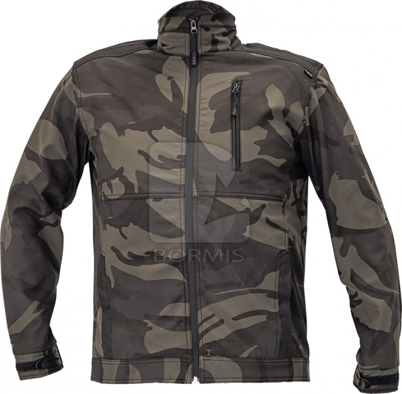 Pánska softshellová bunda so stojačikom, zosilnené ramená OXFORD 600D, 2 bočné vrecká na zips, 1 náprsné vrecko, nastaviteľná šírka manžety rukávov vďaka suchému zipsu, vysoké parametre 8000mm/3000 mvp.