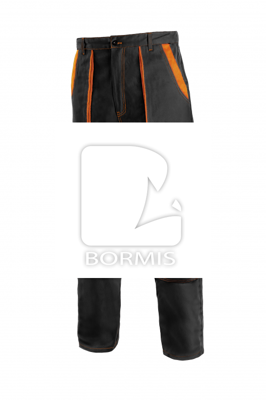 Pánske montérkové nohavice do pása, pás s pútkami na opasok, vzadu do gumy, zdvojené kolena, predné vrecká, bočné vrecko na meter a mobil. Zadné vrecko so záklopkou. Reflexné doplnky.