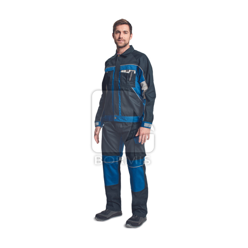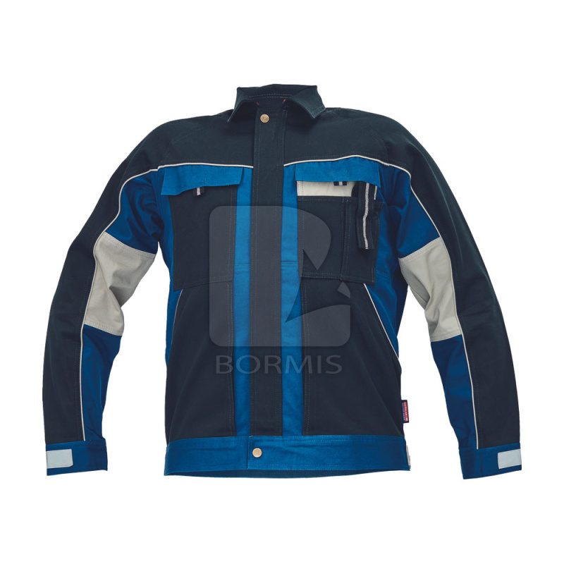 Montérková pracovná bunda vysokej odolnosti so zapínaním na zips, krytý lemom zapínaným na cvoky. Dve veľké predné vrecká. Dve náprsné vrecká so záklopkami na suchý zips. Nastaviteľná šírka rukávov pomocou cvokov. Spodný polohovací lem na cvoky. Reflexné prvky.