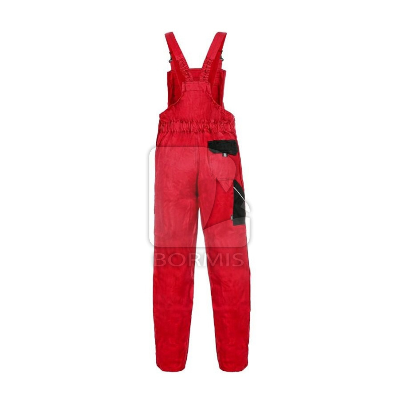 Pánske montérkové nohavice s náprsenkou, zdvojenými kolenami, prednými vreckami, náprsné vrecko na zips, bočnými vreckami na meter a na mobil. Zadné vrecko so záklopkou, traky s gumou vzadu, reflexné doplnky.
