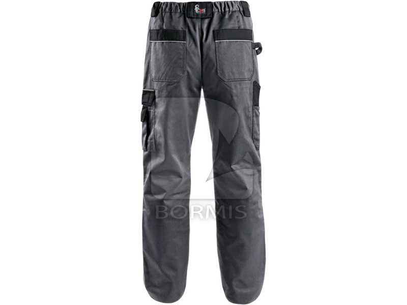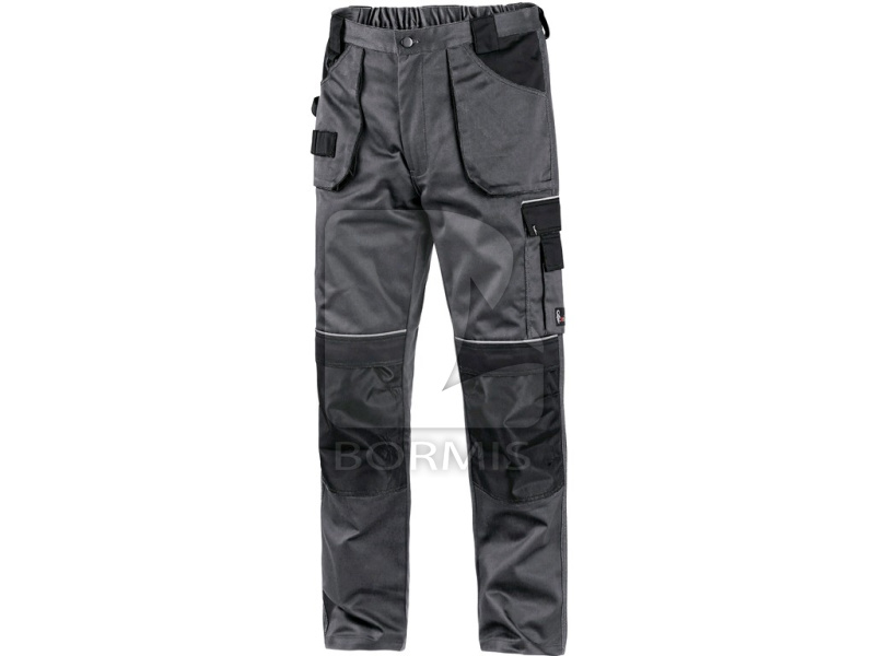 Pánske pracovné nohavice do pása, s pútkami na opasok, vzadu na gumu, zdvojené kolená 600D polyesterom s možnosťou vloženia kolenných výztuh, predné vrecká s pútkami na náradie, dve zadné vrecká, reflexné doplnky.