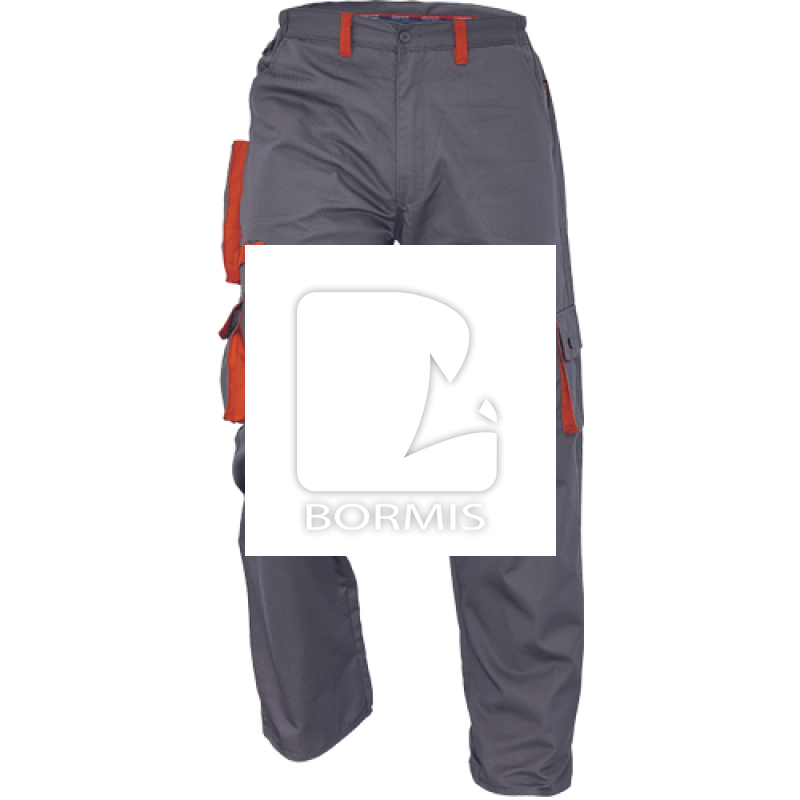 Montérkové pracovné nohavice pohodlného strihu, elastický pás. 6 funkčných vreciek. Nastaviteľná spodná šírka nohavíc pomocou suchého zipsu. Materiál: 80% polyester, 20% bavlna, 235g/m2.