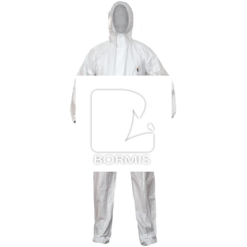 Ochranná antistatická kombinéza s kapucňou, mikroporéznou paropriepustnou vrstvou, predný zips krytou príklopkou ako gumou sťahovateľnými rukávmi a rukávmi. Odev patrí do kategórie CE III, typ 5 a 6, je odolný radu chemikálií, prienik rádioaktívnych častíc a infekčných agensov.
