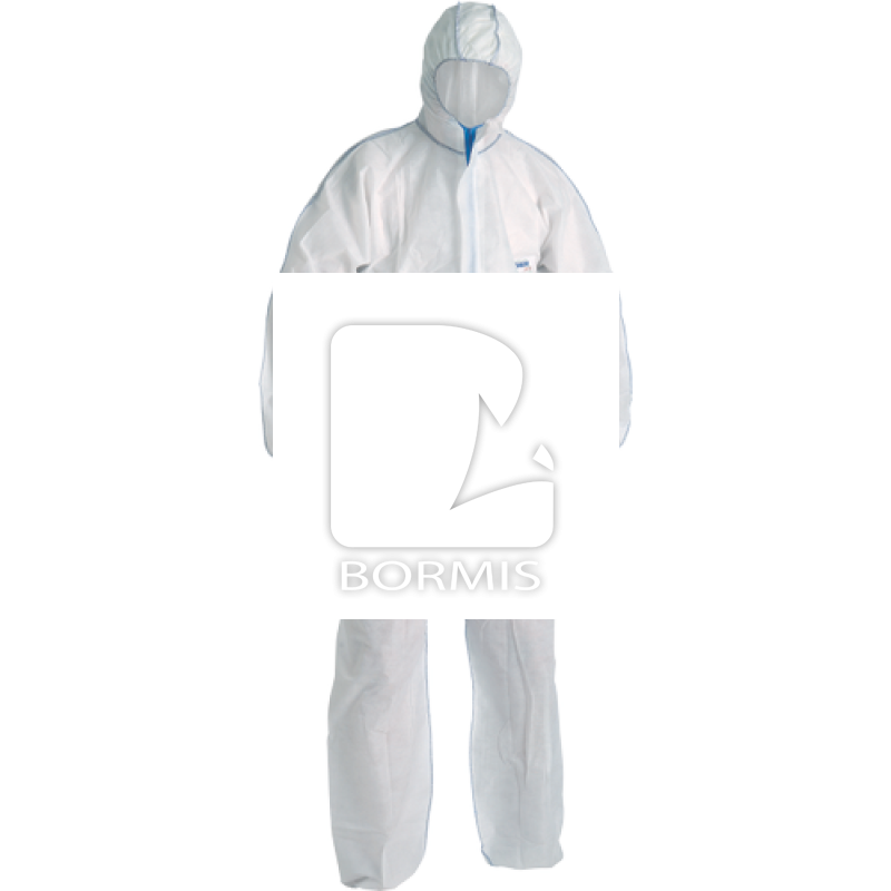 Ochranná kombinéza s kapucňou, príklopkou na zipse, s gumičkou sťahovateľnými rukávmi a nohavicami. Odev patrí do kategórie CE III, typ 5 a 6 a je odolný niektorým chemikáliám.