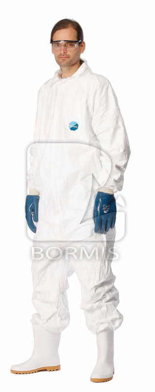 Antistatická vodeodolná kombinéza Tyvek Industry (DuPont) s golierikom, odolná roztokom chemikálií, azbestu a prachu.
