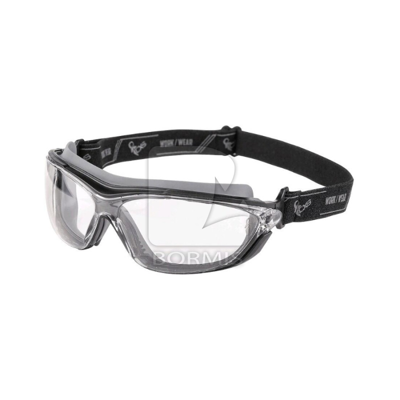 Uzavreté ochranné okuliare. Ochrana UV385, Spĺňajú dodatočné skúšky EN 166 pre odolnosť proti poškriabaniu a zahmlievaniu. Elastická, nastaviteľná textilná páska. Umývateľná TPE vložka pre priľnavosť k tvári.