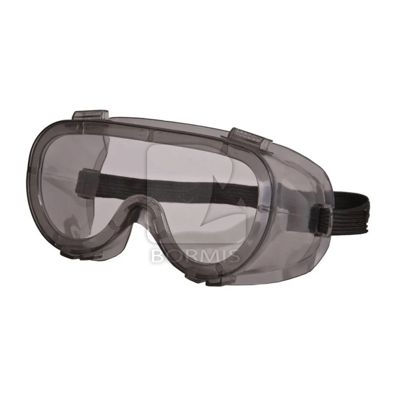 Uzavreté, nepriame vetranie v hornej časti, ochrana UV385, mäkká lícnica, farba rámu číra, zorník číry, nastaviteľná páska. Použitie: vŕtanie, brúsenie, prašné prevádzky. Norma: EN 166, EN 170