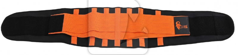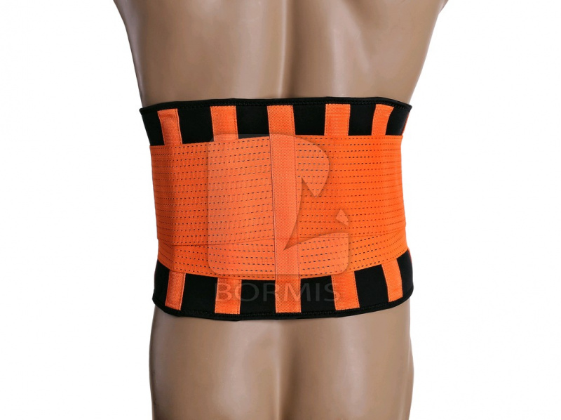Bedrový pás na podporu chrbta, ktorý drží pevne pri práci aj pri športových aktivitách. Zapínanie na suchý zips, pevné pruhy na chrbte, možnosť pritiahnutia pruhov. Farba čierno-oranžová.