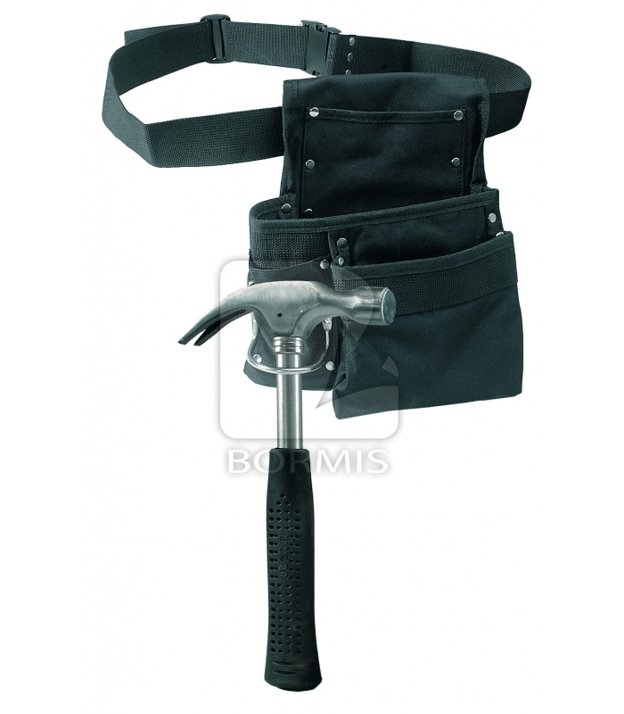 Textilný, jedno vreckový pás na náradie a klince s opaskom. Kovové pútko.