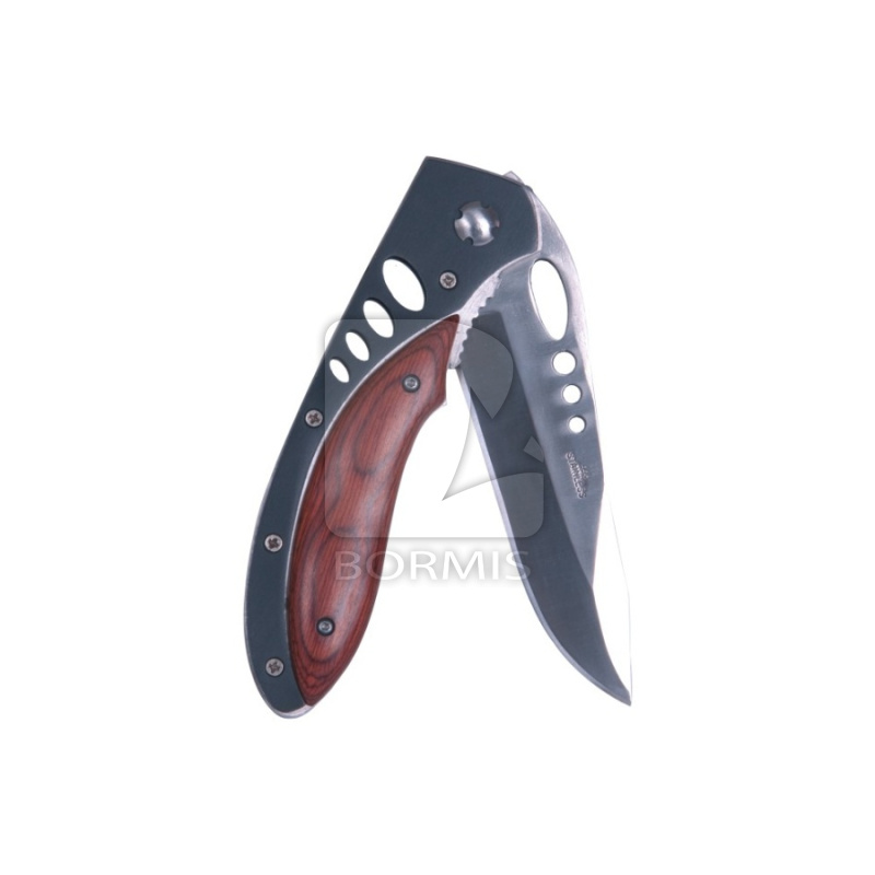 Lovecký nôž zatvárateľný s bezpečnostnou poistkou.