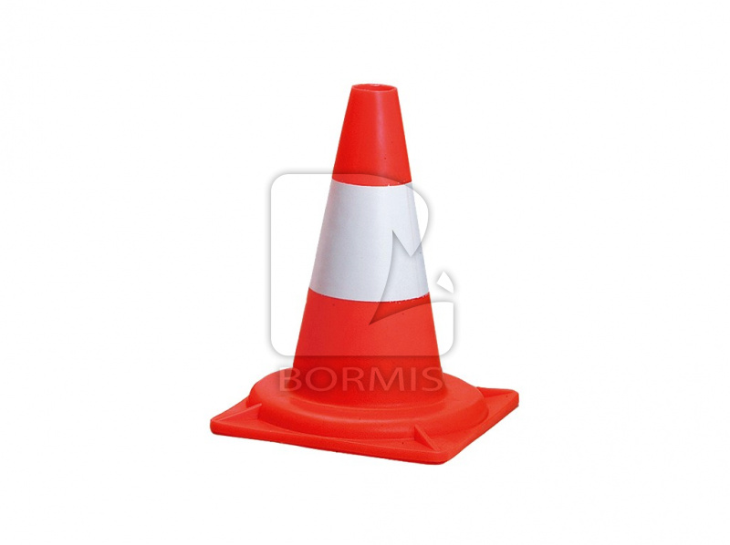 Červený s bielym pruhom, materiál: PE, výška 30cm, rozmer podstavca: 22,5 x 22,5 cm, priemer hornej časti 4 cm.