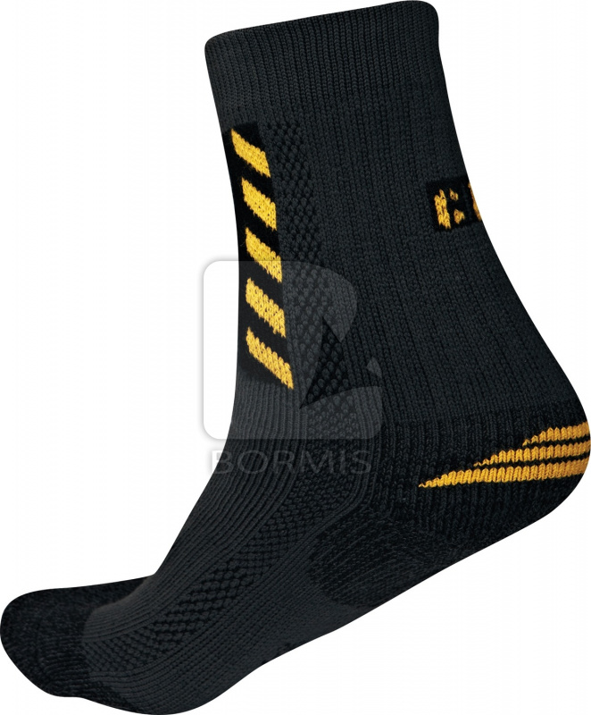 Špeciálne ponožky vytvorené do náročného pracovného prostredia. Pracovné ponožky ZOSMA sú vyvinuté s použitím najnovších technológií vo výrobe a kombináciou špeciálne upravovaných vlákien, ktoré zaručujú: - maximálne pohodlný neškrtiaci lem - maximálnu ochranu nohy pri extrémnej pracovnej záťaži - ideálny odvod potu - dokonalú tepelnú izoláciu - veľmi jemné šitie na špičke - elastickú bandáž proti posunu ponožky v obuvi - mäkko podložené zóny na ochranu nohy pred otlakmi a pľuzgiermi - vetracie kanáliky zaručia ideálnu klímu aj pri extrémnej záťaži.