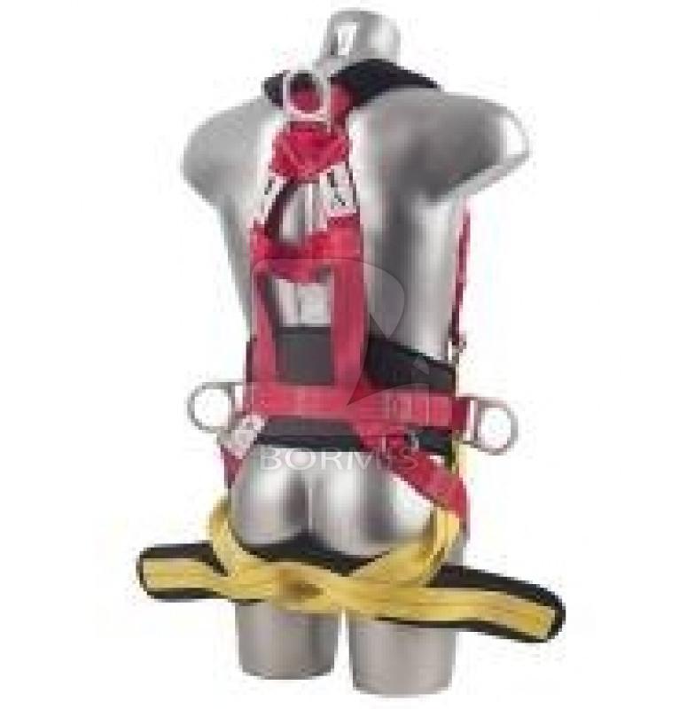 Univerzálny postroj. Dve hrudné slučky, dve bočné D-krúžky, posuvný chrbtový D-krúžok, dve sedové slučky a dve v spodnej časti chrbta. Plne nastaviteľné ramená, nastaviteľný sedák, chrbtové popruhy s polstrovaním pre väčšie pohodlie.