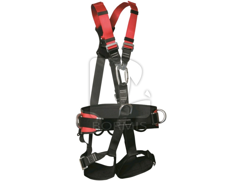 Bezpečnostný postroj. Pripojovacia karabína - pre pripojenie systému zachytenia pádu.