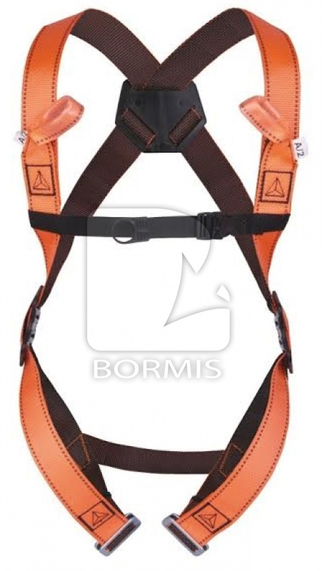 Bezpečnostný postroj s 2 bodmi uchytenia (chrbtový a prsný). 2 nastaviteľné spony.