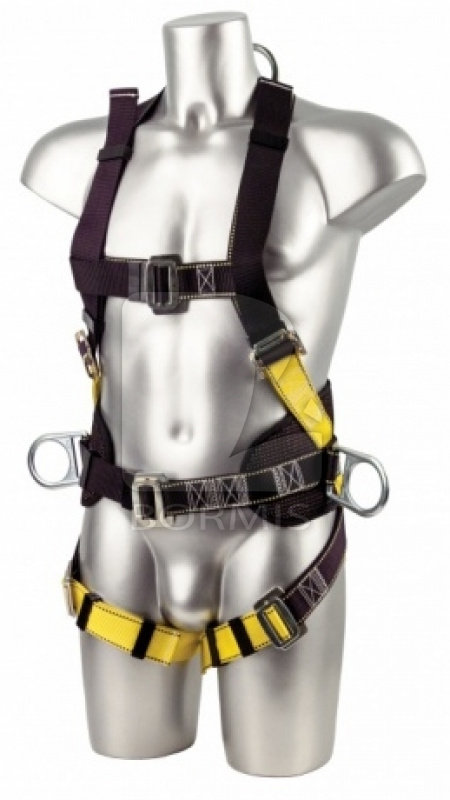Celotelový postroj s priedušným bezpečnostným opaskom s funkciou rýchleho uvoľnenia. Zadné kotvenie pomocou D-krúžku. Nastaviteľné body chrbtového kotvenia. 2 bočné D krúžky.